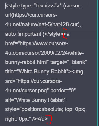 01 get a custom cursor from cursors4u and copy the universal code02 remove everything that comes after the </style> tag